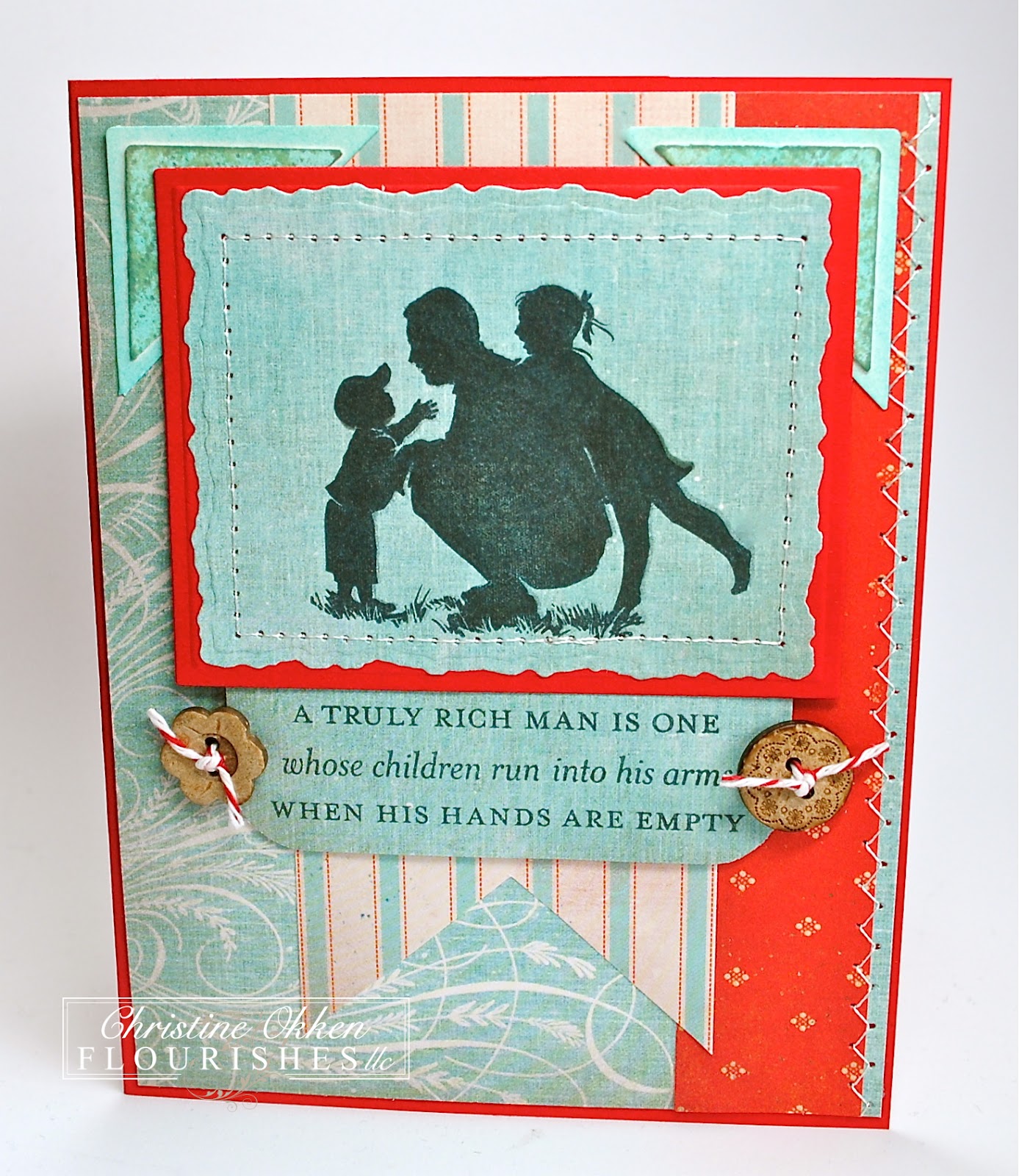 Go ahead, dare to make dad cry with a sentimental silhouette style card like the one Christine Okken created using stamps from Flourishes. A couple wood buttons also make great manly accents on her card.