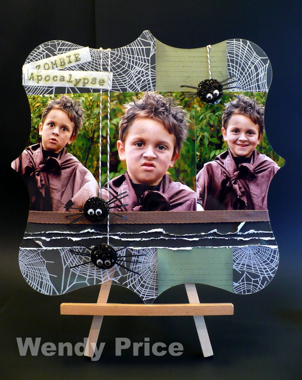 Zombie Apocalypse scrapbook page by Wendy Price with Stampendous black glass glitter,  image source Paper, Ink and Smiles