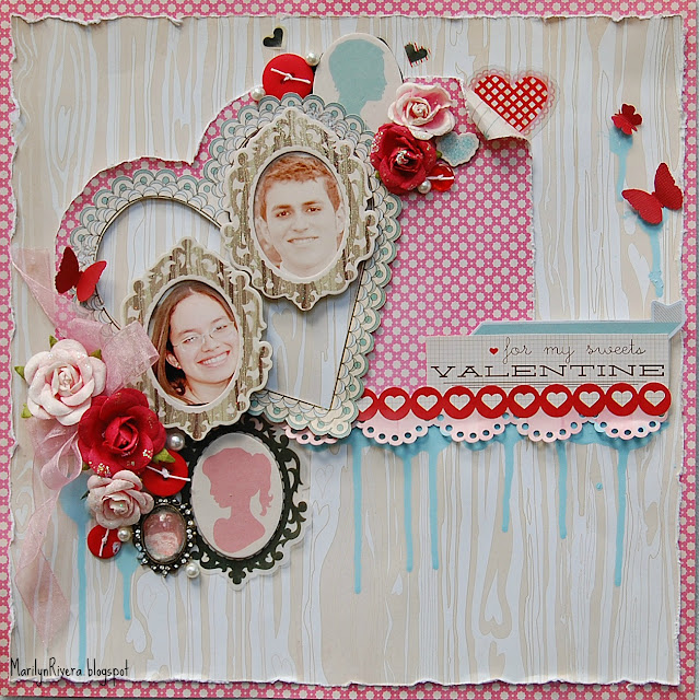 Scrapbook page by Marilyn Rivera, page features Basic Grey True Love collection, image source Treasuring Memories